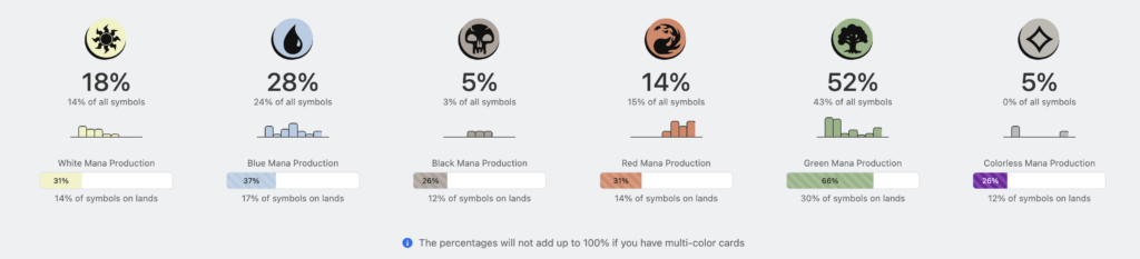 マルチカラーがあるので足すと100%を越えますが、マナ加速がある関係で色別の枚数は