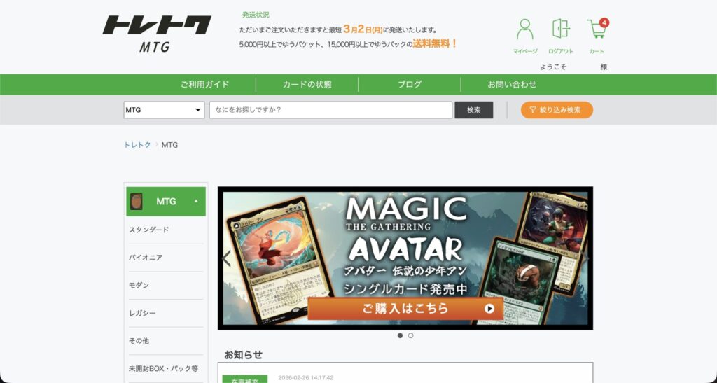 前回のエンダルさんと同様にトップバナーが古いままですが、こちらはSNSがとても活発というわけではないですし、XのMTGアカウントに至ってはフォロワーが200名ちょっとなので、事実は分かりませんがSNSからの流入が多いようには見えません。