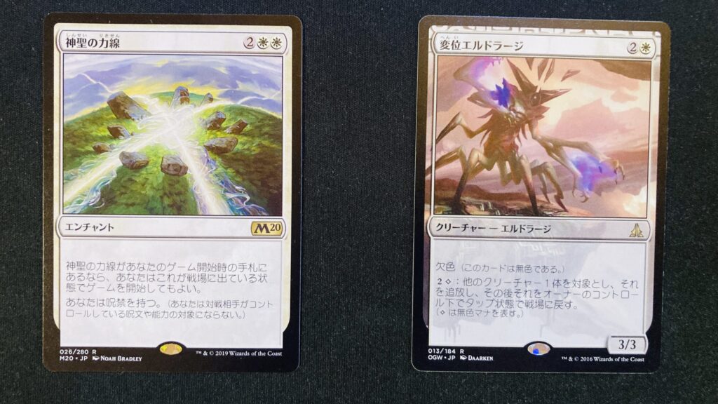 ランクAの白力線と変位エルドラージはそれぞれ側面に白いかすれがあるかな?という状態。
