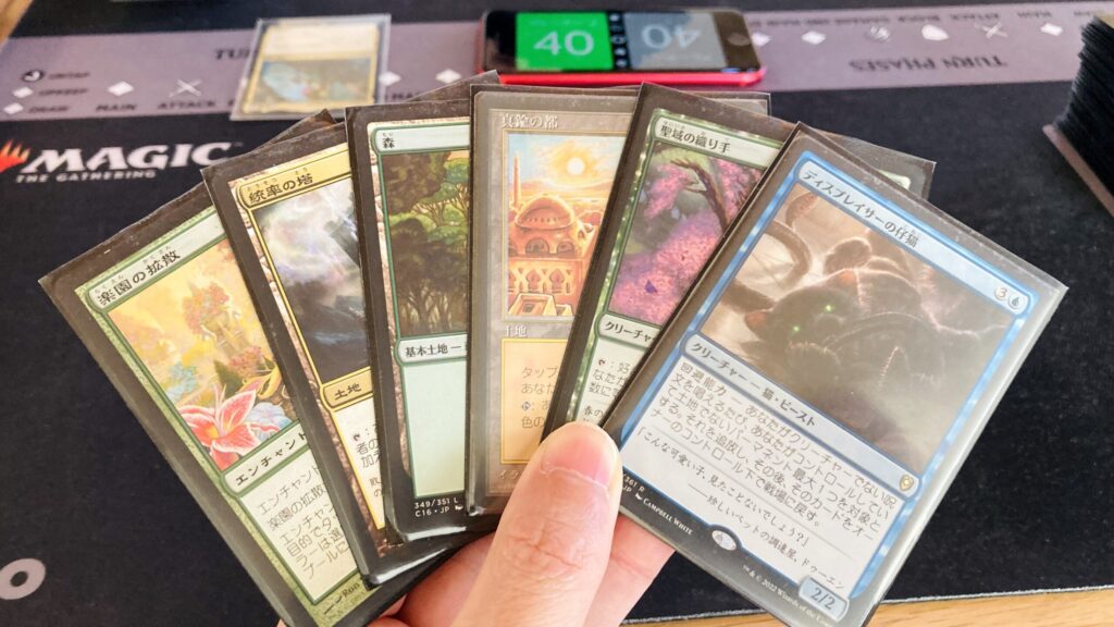 ここでフロストカイトの皮を被ったファラジの旅人が出たので、次からはオーロラでめくれるパーマネントが5枚になります。