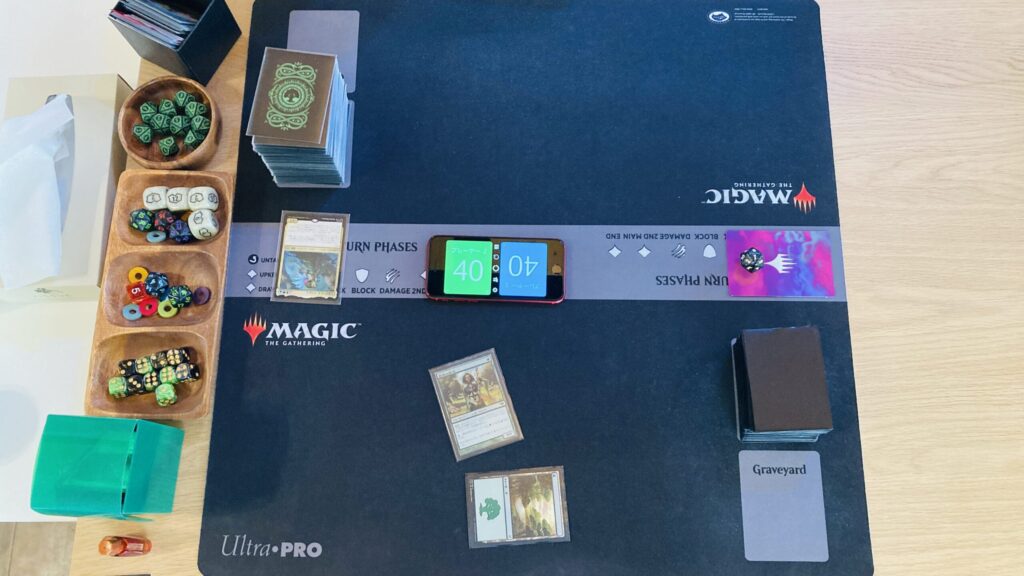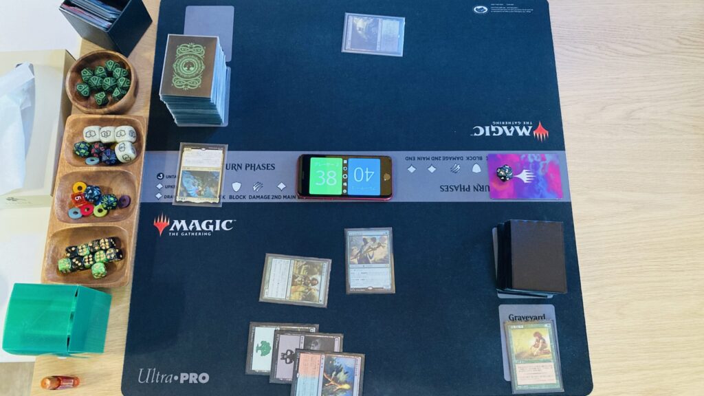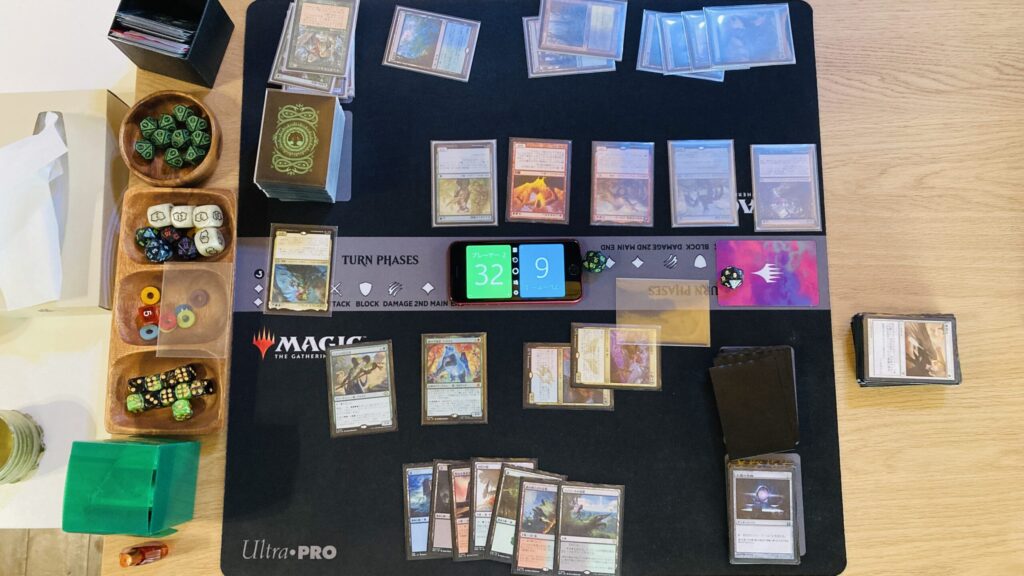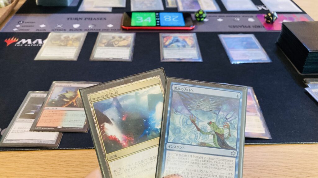 今回は私が先手。1vs1ですがデュエルコマンダーではないので、禁止カードもEDH準拠なのはいつも通り。