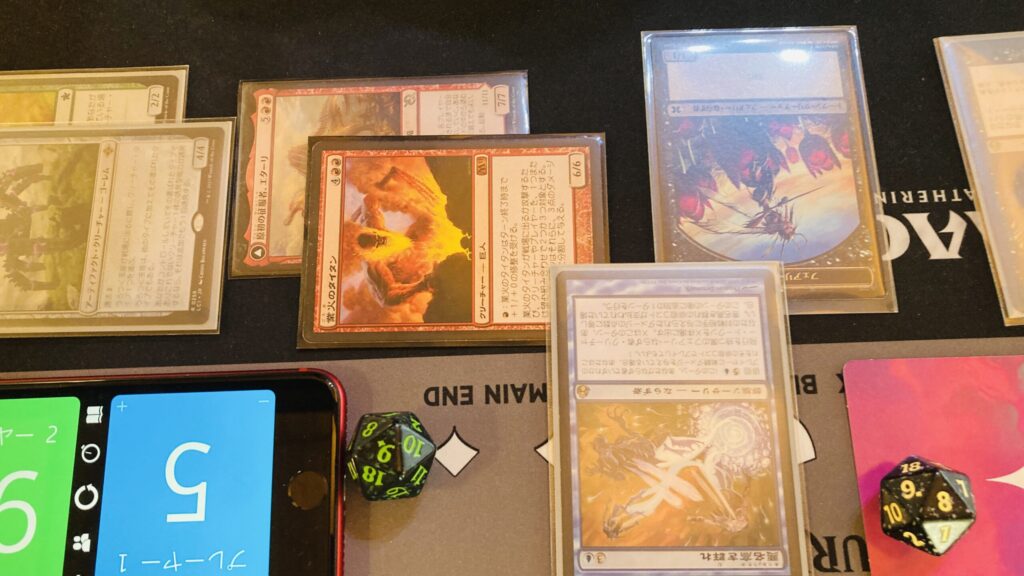 ここ、アタルカトークンをフェアリー8体で止めてたけど、ライフに余裕あったから、フェアリーをもう1体でも残してたら最後負けたんだよね。