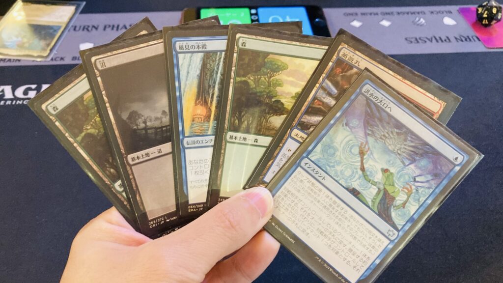 3T連続で土地セットしてエンドとか、開封直後の統率者デッキでもなかなか無いのではないでしょうか。