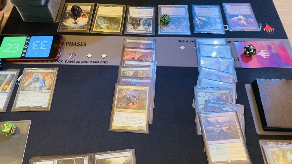 なお、先手の妻はフェッチから青黒ショックランド→定業という実に良いスタートを切っているので、序盤もっさりが確定している今回は割と厳しそうです。